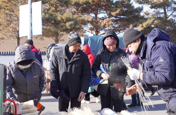 此起彼伏的叫卖声、讨价还价声,夹杂着孩子的嬉闹声、商贩的吆喝声,让整个新春大集充满了浓浓的人间烟火气。卖冻梨、冻柿子的商贩将果实摆放在敞口货箱中,晶莹的冰壳透着果肉的色泽,咬开一口冰爽甘甜、口感绵密;春联福字摊位前,红红火火,“福满农家”“春满鹤乡”等寓意吉祥的春联供不应求,乡亲们卷起中意的春联,笑意盈盈地走向下一个摊位。这份独有的新春氛围,不仅串联起游子的乡愁,更凝聚着乡亲们对美好生活的期盼。